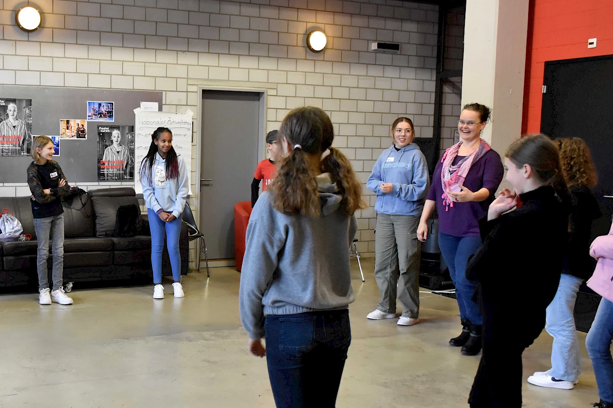 ... erforschen das Thema eines Stücks auf vielfältige Weise im Unterricht, vertiefen es theaterpädagogisch beim eigenen Theaterspiel, lernen weitere Mitarbeitende der Produktion kennen, besuchen eine Probe und erleben die Premiere.